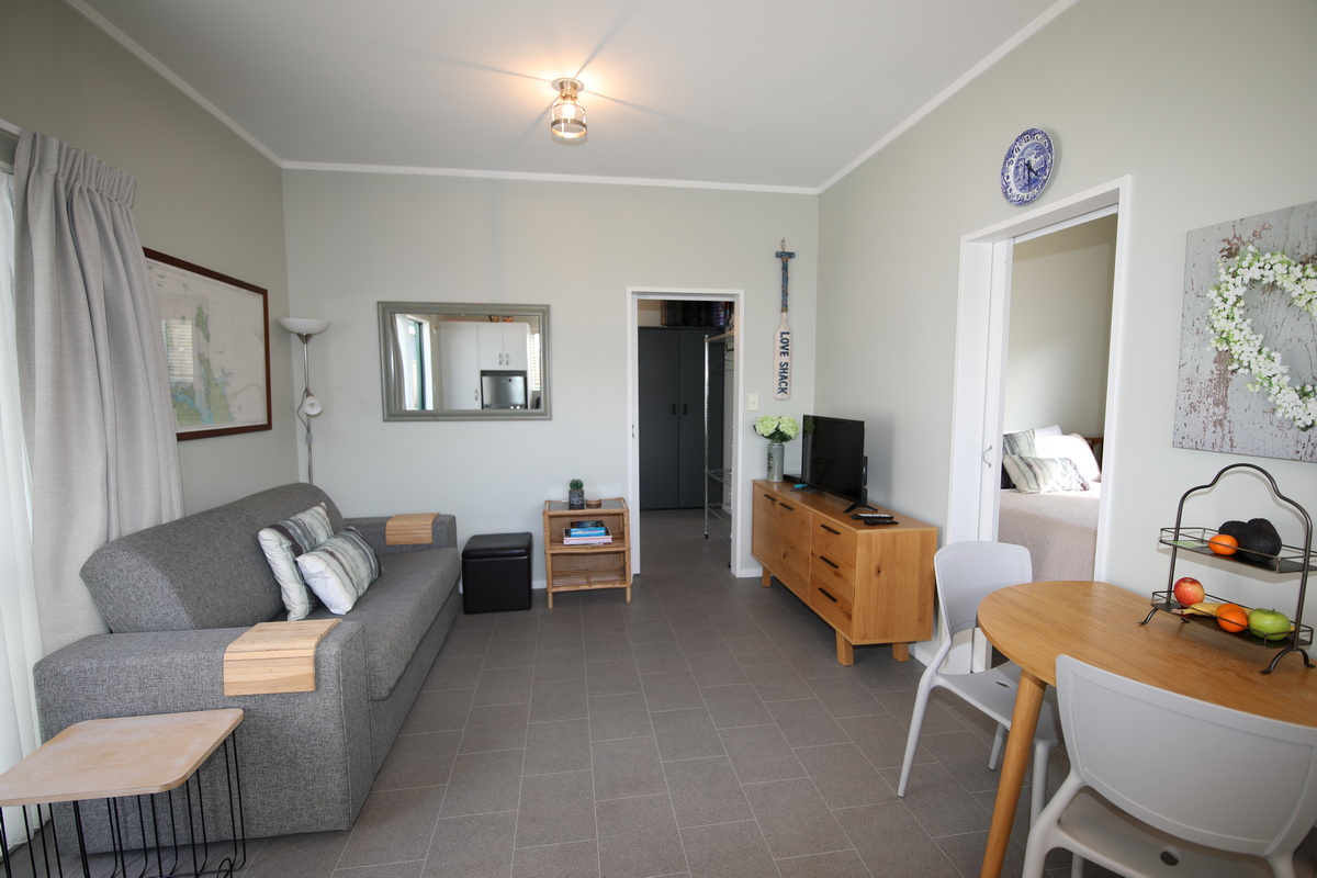 The Luv Shack is a cute cottage with two bedrooms, a bathroom and an open plan kitchenette / lounge / dining area. Just a few mins walk to the beach and a 4 min drive to the centre of town. We are in a quiet location which backs on to a local farm. We are right next door if there’s anything you need and happy to help make your stay in Whitianga a memorable experience.
