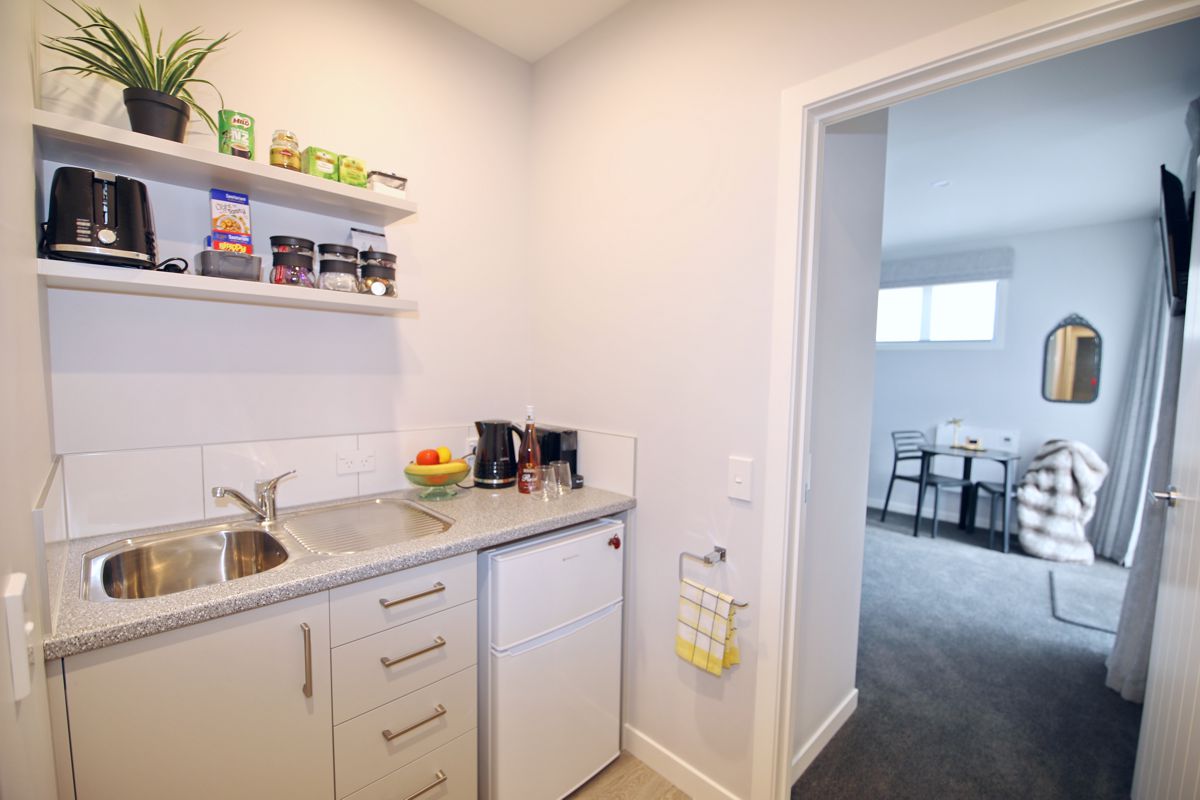This lovely light and warm bedroom with a comfy king size bed and your own ensuite also features a private entrance and a shared kitchenette, offering all the amenities needed for an enjoyable stay here at Green Door on 4: